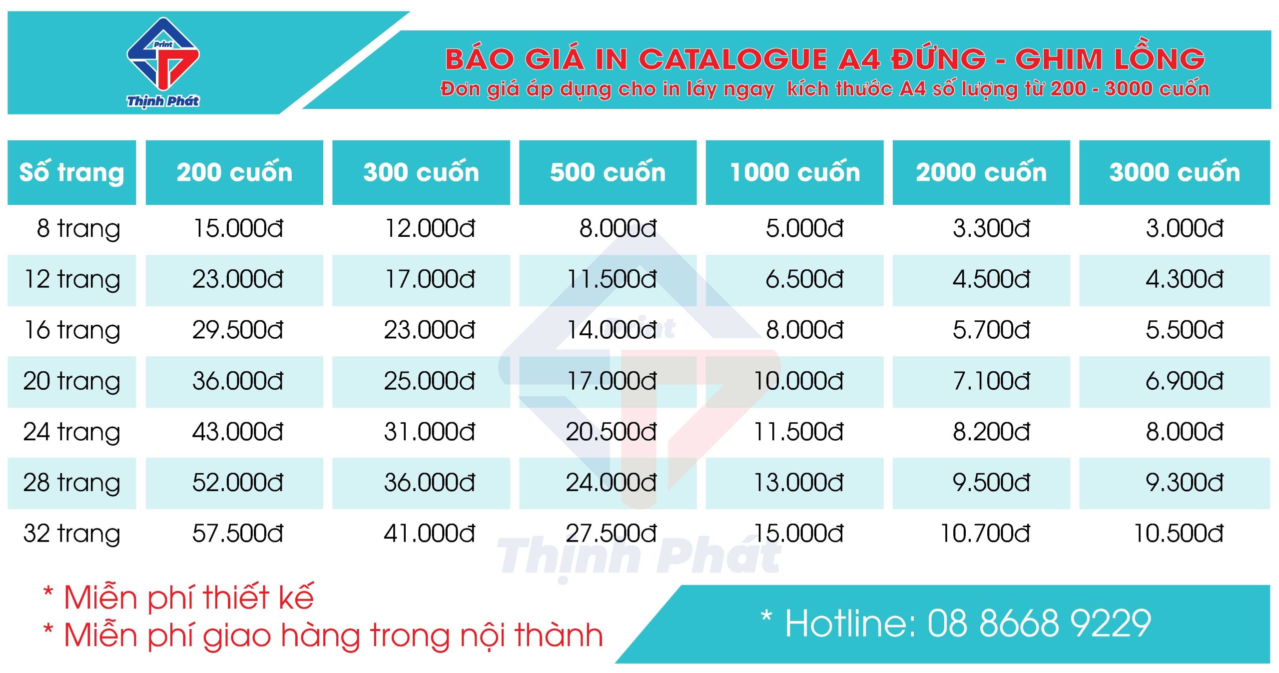 In Thịnh Phát cung cấp dịch vụ in Catalogue chuyên nghiệp, chất lượng sắc nét, giấy cao cấp và đa dạng kích thước. Báo giá được tính theo số lượng, loại giấy và nhu cầu thiết kế, cam kết mức giá cạnh tranh – đúng tiến độ – chuẩn màu thương hiệu.