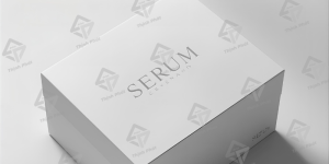Mẫu hộp giấy đựng serum – tông trắng kết hợp logo dập nổi, thể hiện phong cách tinh khiết và sang trọng.